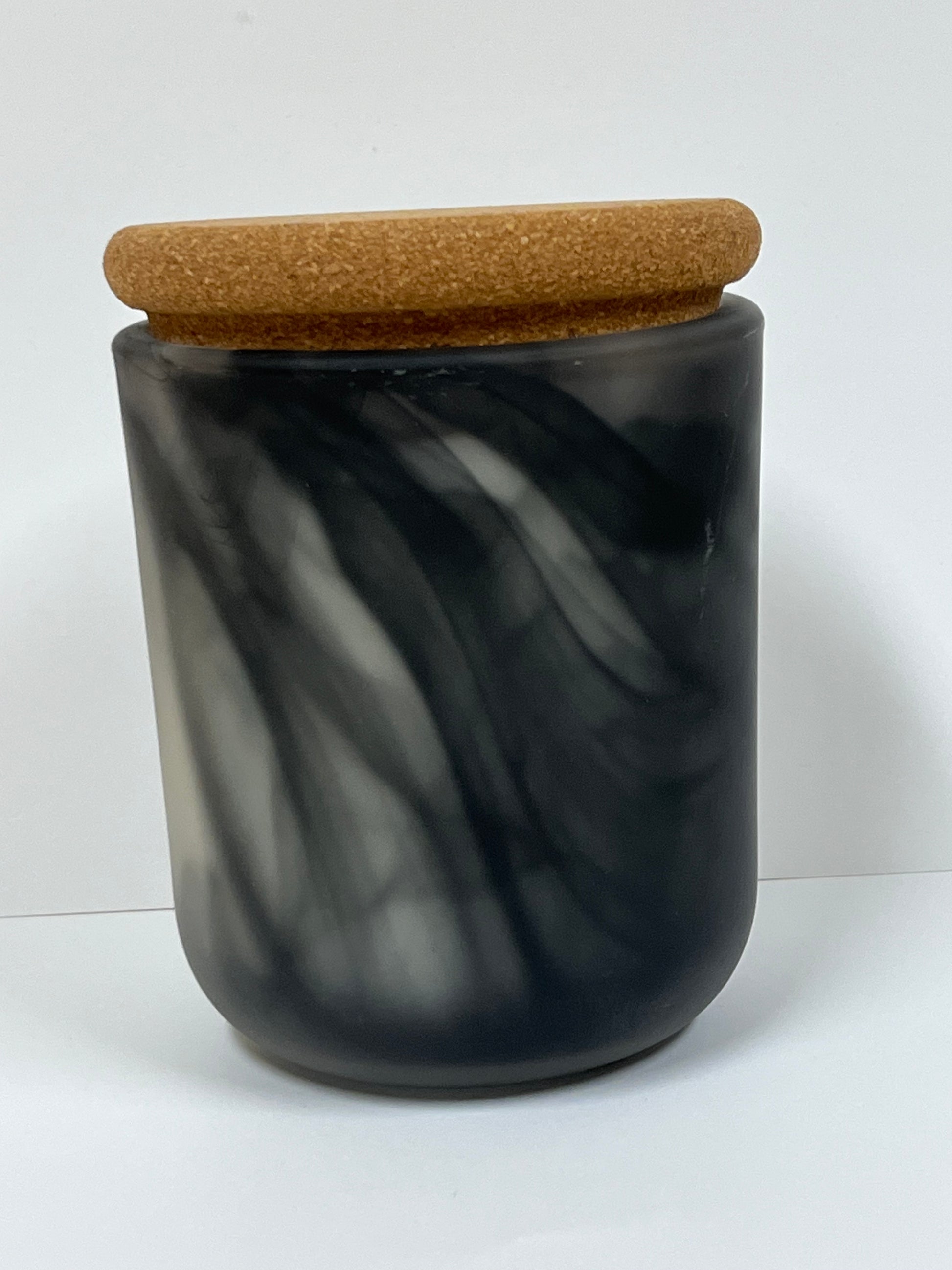 10oz | 50+ Hour Burn | 100% Soy Wax | 100% Natural Wick | Hand-poured Into A Black + White Frosted Marble Glass Jar w/ a Cork Top