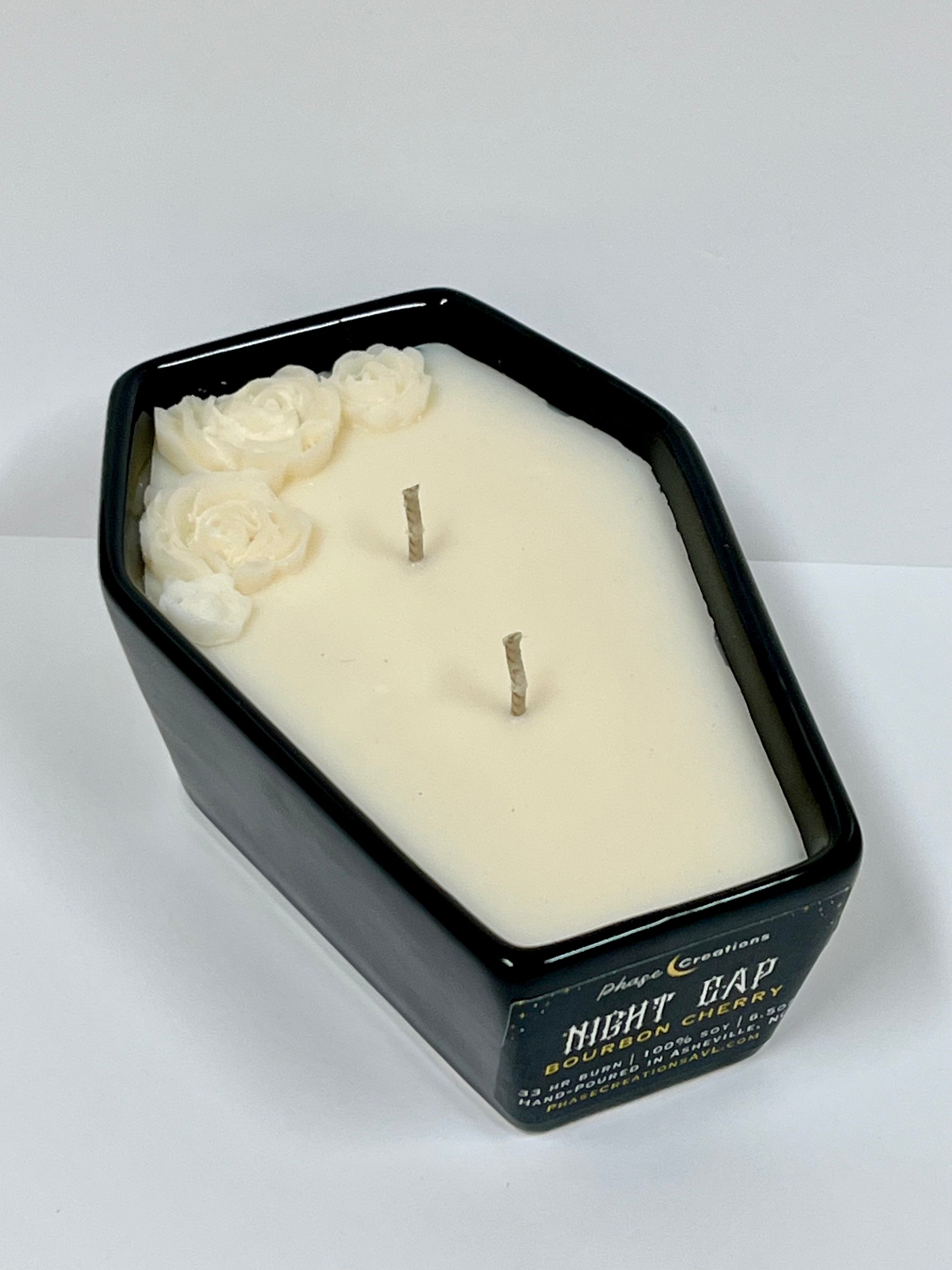 6.5oz | 33 Hour burn | 100% Soy Wax | 100% Natural Wick | Hand-poured Into A Ceramic Black Coffin